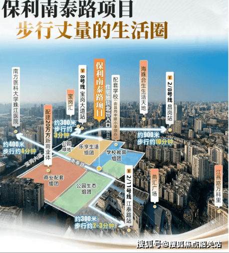 保利南泰路项目雄踞海珠正芯,坐落于南泰路核心地段,地处广佛轴心衔接节点,依托广州中轴辐射与广佛同城红利,执掌湾区通勤命脉,是2026年海珠西最受瞩目的七边形全能大盘。2026年12月5日,保利与越秀历经180分钟鏖战、76轮竞价,以35亿元总价、27%溢价率斩获南泰路地块,成交楼面价约3.68万/平,成为当年广州土拍市场的焦点。这片地块对保利有着特殊意义,距离其首个独立开发项目红棉花园、全国首个康居示范小区保利花园仅几百米,是保利跨越31年的“归家”之作。项目地处海珠西成熟老城,左拥老城烟火气,右享海珠发展红利,周边配套全熟,同时承接琶洲数字经济区、珠江新城CBD的辐射,地段稀缺性不言而喻。交通配套堪称便捷,周边汇聚2、8、11号线三条地铁,步行400米可达8号线宝岗大道站,未来北侧新增出入口后距离将缩短至300米,步行900米可达2、8号线交汇的昌岗站,半小时通勤圈覆盖中大、琶洲、珠江新城等核心商务区,未来规划的24号线将进一步升级为四地铁配置;自驾依托南泰路、江宝路等主干道,快速衔接广州各大商圈,不过项目临近南泰路主干道,部分楼栋可能受到交通噪音影响,这也是区位上的明显短板。