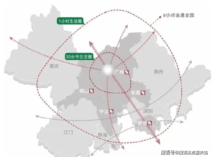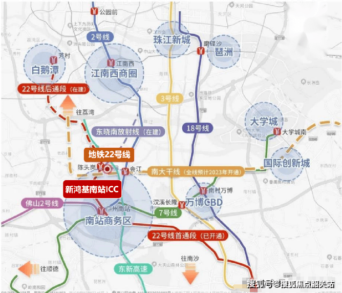 交通法则:通过12条轨道交通无缝连接世界级TOD,实现快速联通广州三大CBD,并覆盖大湾区1小时生活圈。