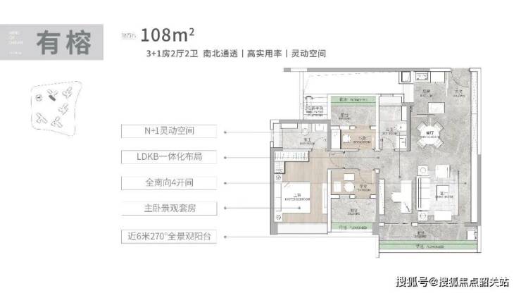 各户型样板间亮点鲜明,重点展示全南向采光与空间优势:110-129㎡样板间,凸显紧凑实用的空间布局,南向阳台与LDKB一体化设计实景呈现,采光通风俱佳;140-165㎡样板间,着重展示奢阔空间尺度与景观视野,270°观景阳台、三面采光主卧等设计直观可见,彰显改善户型的舒适感与尊崇感。