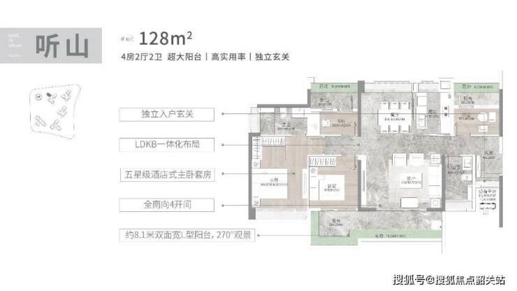 户型设计兼具实用性与舒适性,亮点纷呈:建面约110㎡户型,配备近6米南向阳台,拥有270°景观视野,采用LDKB一体化设计,打造阔绰方厅,空间通透;建面约129㎡听山户型,设置阳光玄关,兼顾私密性与储物功能,契合岭南居住风水理念;建面约140㎡户型,居住空间充裕,主卧实现三面采光,270°观景视角,提升居住舒适度;建面约165㎡大户型,朝南面宽达17.4米,配备近9米L型景观阳台,大方厅设计,彰显高端改善格调。