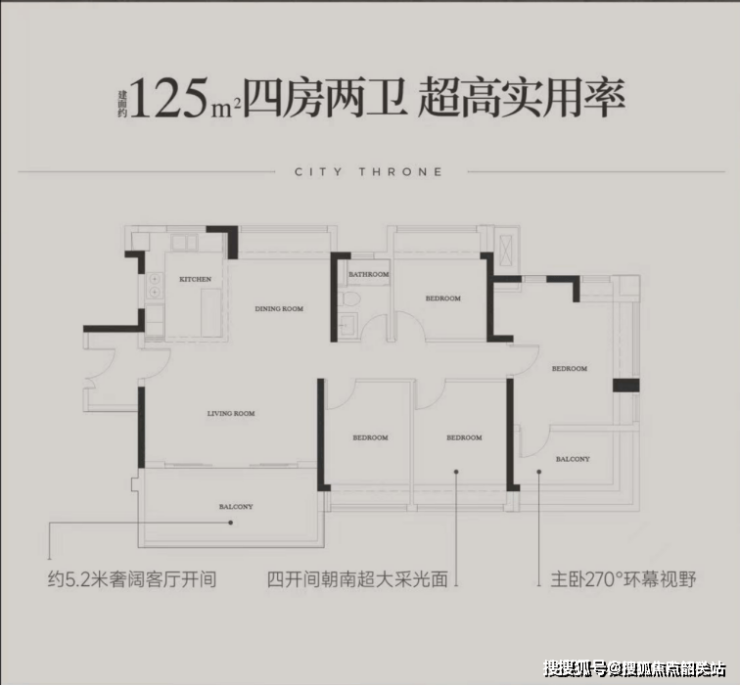125㎡四房(塔楼,总价约710万起)