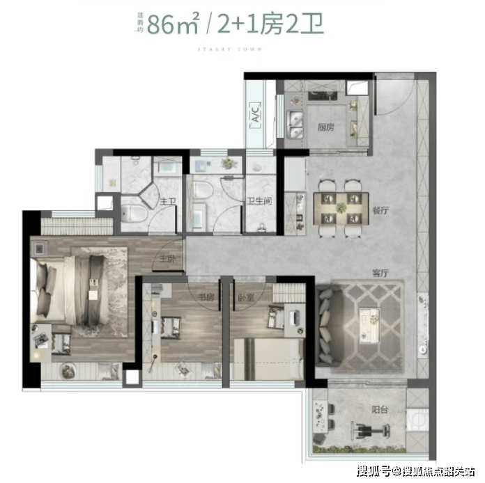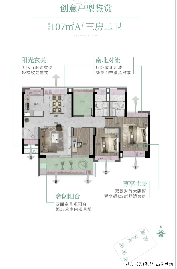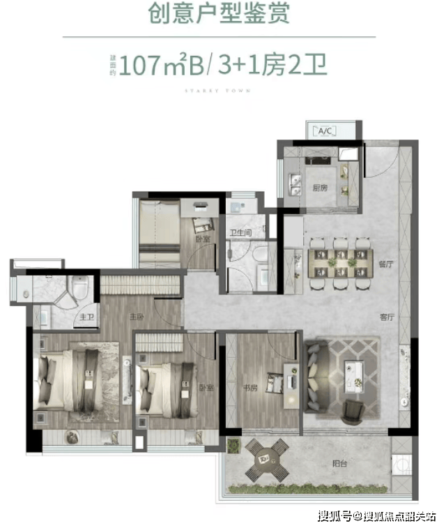 其次,户型规划方面,越秀大学星汇城推出了多种面积段的产品,从小户型到大平层应有尽有,满足不同家庭结构的需求。所有户型都注重实用性与舒适性的结合,确保每一寸空间都被合理利用。例如,88平方米的小户型就做到了四面宽朝南的设计,最大限度地引入自然光线,营造出明亮通透的生活空间。而125平方米的大户型,则拥有双面宽观景阳台,让住户可以尽情享受户外美景。