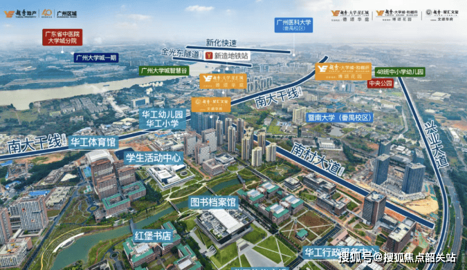 越秀大学星汇城位于国际创新城的核心区域,紧邻地铁4号线新造站,交通极为便捷。该项目不仅地处琶洲以南,而且通过南大干线与万博、大学城等重要区域紧密相连。这里不仅是广州南部的交通枢纽,更是未来发展的关键节点。根据最新的城市规划,这一地区被定位为集科技、文化、教育于一体的综合性城区,预计将成为推动广州南部经济发展的新引擎。