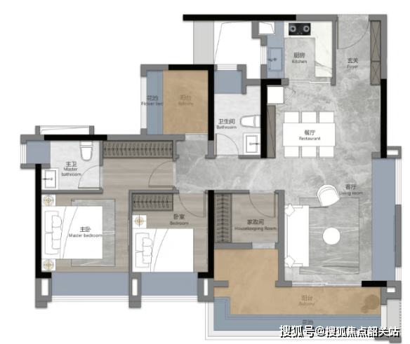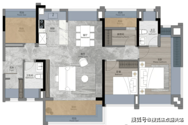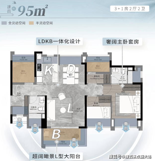 95平方米四房两厅两卫:空间更加宽敞,适合需要更多居住空间的家庭。