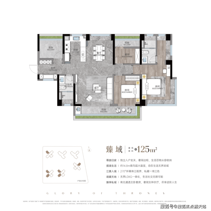户型设计:T3或风车型T4楼型设计,主要为了最大化北向江景资源
