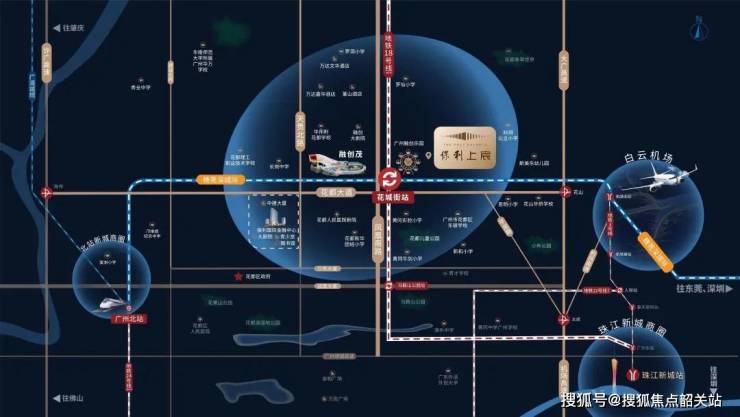 保利上宸项目地处花都中轴CBD规划范围内,距离融创乐园直线距离约300米。