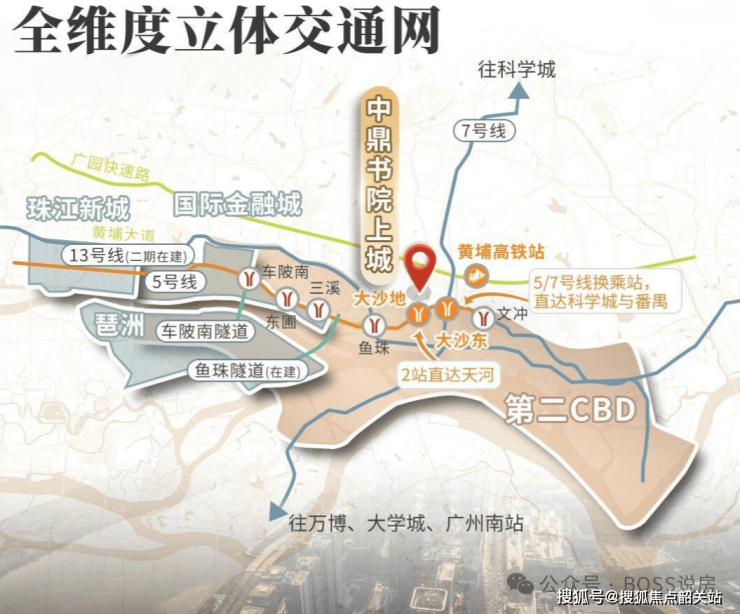 地铁:步行约 600 米到 5 号线大沙地站,2 站鱼珠、8 站珠江新城,通勤高效。