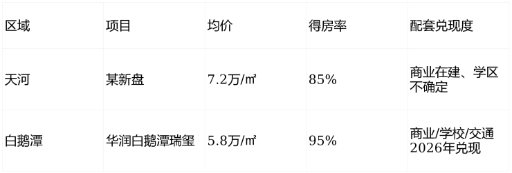 根据2025年Q4数据,天河核心区新盘均价已突破7万/㎡,且多为超高层、高密度社区;而华润白鹅潭瑞玺均价仅5.8万/㎡,且得房率、配套、品质全面领先。