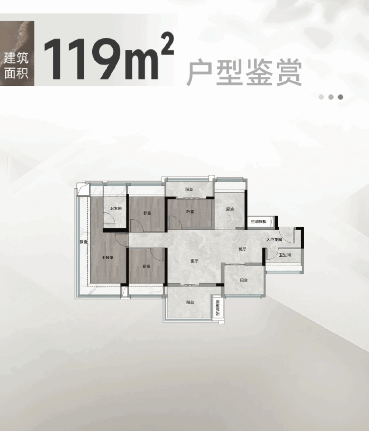 建面约106㎡户型为东南朝向,高层房源可远眺白云山景观,主卧搭配L型飘窗,两个次卧分别配备L型飘窗或阳台,采光资源分配均衡,没有明显的空间短板。建面约119㎡户型为西南朝向,靠近社区内部,环境相对安静,做到五开间朝南,主卧空间宽绰,U型采光面提升居住舒适度;建面约138㎡户型为119㎡户型的放大版,空间尺度更充裕,同样可观赏白云山景观,适配人口较多的改善家庭。所有户型均配备双层中空玻璃,电梯与居室之间做隔音处理,有效隔绝外界噪音,提升居住静谧性。