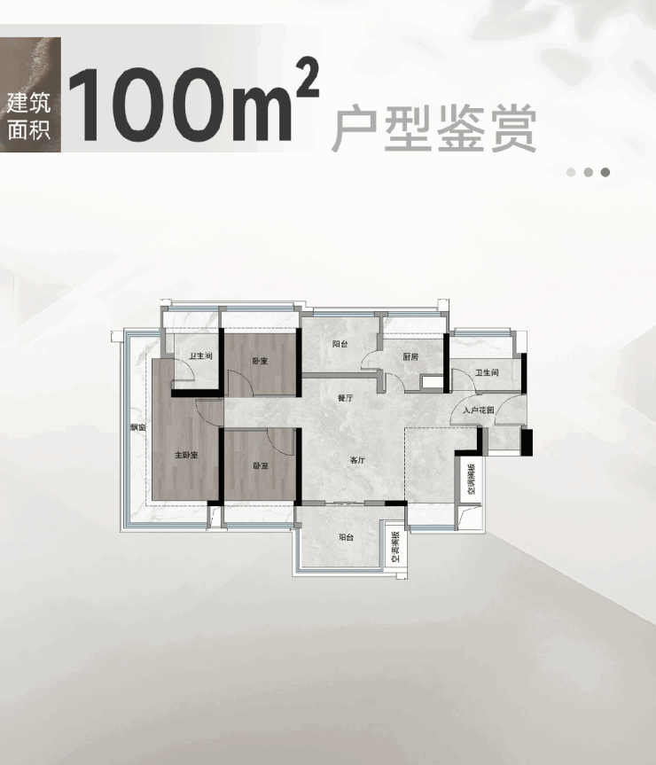建面约100㎡户型是项目入门级产品,也是白云新城当前面积较小的新房四房,做到三面采光、四开间朝南,南向面宽约14米,客厅、卧室等核心功能区均朝向南向,采光通风效果稳定。户型采用LDKG一体化设计,客厅、餐厅、厨房、阳台连通,拓展了公共空间的视觉尺度,同时搭配全屋分层收纳系统,玄关处设置专属800库储藏空间,可容纳婴儿车、28寸行李箱等大件物品,解决改善家庭收纳痛点。