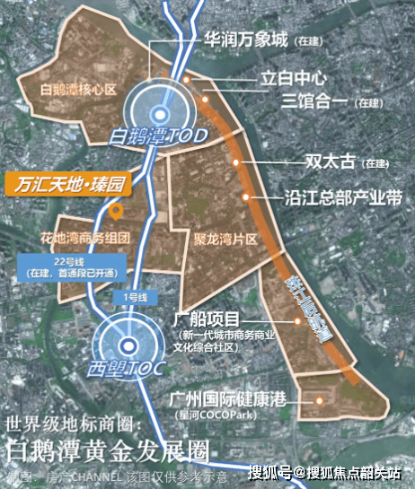 其中,花地湾着重打造创新创业和总部经济功能;白鹅潭则是要构建生态宜居的滨水社区;而聚龙湾则将重点发展文化旅游产业。三大功能板块优势互补、协同发展,形成了广州城市发展的"金三角"。