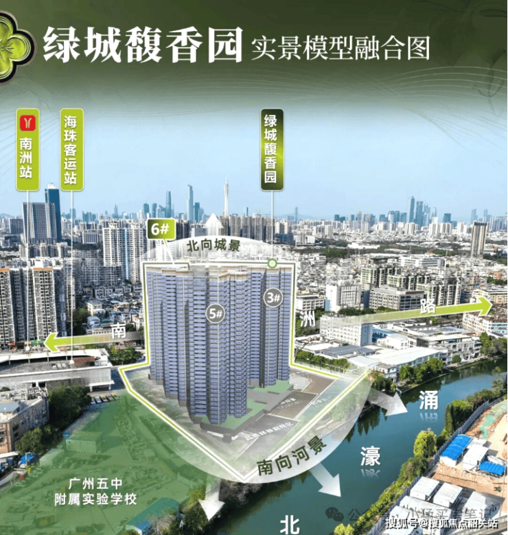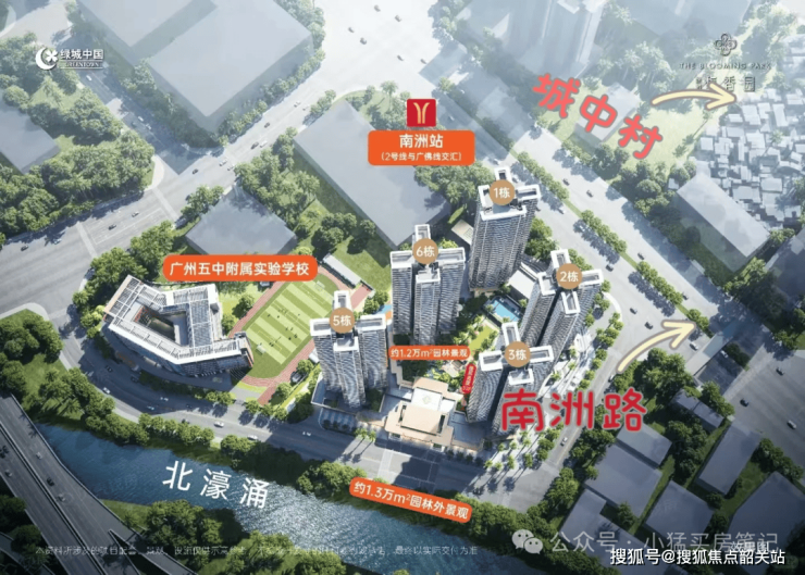 答: 项目位于海珠区南洲路,地处广州大道南与东晓南路交汇的成熟板块。其最大的交通亮点在于“双地铁零距离”。项目距离地铁2号线与广佛线交汇的南洲站C1出口仅约85米,名副其实的“地铁上盖”。通过地铁网络,3站可达客村,无缝换乘3号线;5站直达珠江新城;7站即到琶洲商务区,对于在天河、海珠核心区工作的通勤族来说,时间成本极具优势。更值得一提的是,项目规划了地库与地铁站的连通通道,这在海珠区的新房中属于创新设计,让业主未来可以实现“风雨无阻”的归家与出行。