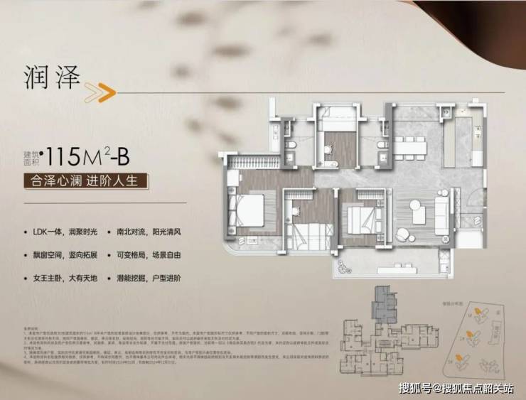 115㎡四房:520万起,采用南北对流布局,搭配LDKB一体化空间,动线合理,空间开阔,适配多孩家庭;