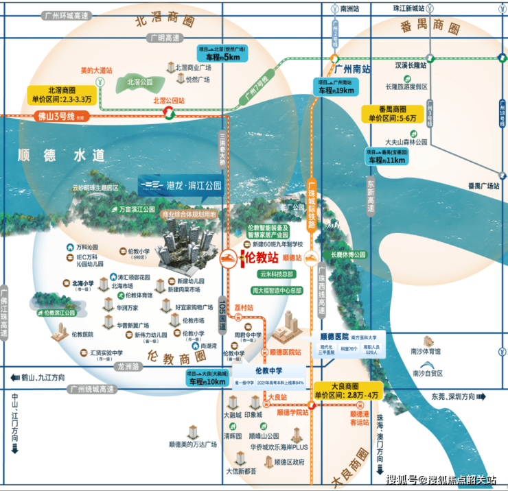 随着广佛一体化持续推进,伦教凭借其一线接壤广州、交通便利以及政策支持的优势,成为承接产业转移与人口外溢的重点区域。政府在该板块持续加大投入,尤其是在教育资源方面的倾斜,使得区域整体竞争力不断提升。从房价角度来看,当前伦教仍处于佛山的价值洼地,对比北滘、大良等成熟板块具有明显的价格优势,而未来随着地铁3号线的全面运营、广珠城轨的辐射效应增强以及南沙、番禺外溢需求的不断释放,区域房价有望迎来新一轮上涨周期。港龙滨江公园作为区域内少有的精装江景盘,兼具自住舒适性与投资保值性,具备较强的升值潜力和资产配置价值。