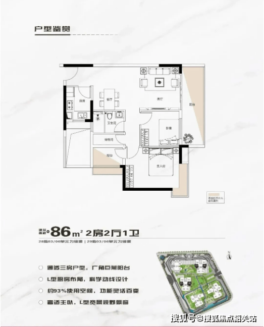 【户型一:约51㎡精装一房一厅一卫】:该户型为紧凑实用型一房,面积约51㎡,布局合理,动静分区清晰,适合单身人士或小情侣居住。户型整体方正,采光通风俱佳,客厅连接观景阳台,可俯瞰社区园林景观,拓展室内空间的同时,也能享受惬意的观景体验;卧室朝南,采光充足,空间宽敞,配备独立衣柜,满足衣物收纳需求;厨房为L型设计,操作空间充足,动线合理,方便日常烹饪;卫生间干湿分离,干净整洁,避免潮湿困扰;该户型小巧精致,总价低,性价比高,同时精装交付,省去装修烦恼,即买即住,无论是自住还是过渡,都是绝佳选择。
