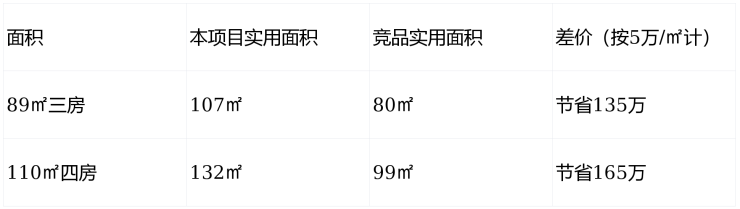 89㎡三房:实际使用面积107㎡,比竞品多1个儿童房;