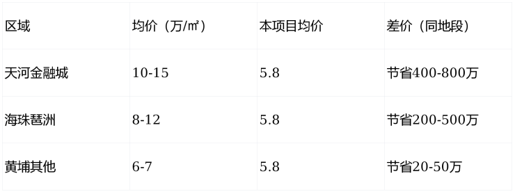 资产价值:老黄埔板块5年房价涨幅达40%,项目均价低于周边二手房10%,抗跌性强。