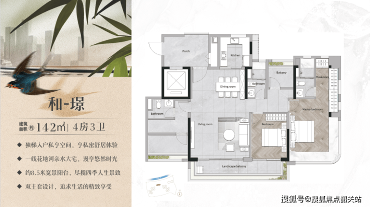 □ [142㎡四房两卫] 一线花地河景观,中轴王座