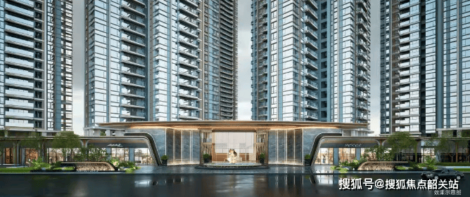在建筑外立面的处理上,项目摒弃了老黄埔过往常见的厚重石材或繁琐装饰,转而采用现代艺术风格的美学立面。线条简洁流畅,色彩明快大方,通过玻璃与金属材质的巧妙搭配,营造出一种轻盈通透的视觉效果。这种设计风格不仅符合当下年轻审美的趋势,也与周边正在形成的现代化城市界面相融合。值得一提的是,项目入口处设计了约64米高的显赫门楼,超大尺度的门庭设计兼顾了昭示性与仪式感,成为归家动线上的第一道风景。结合裙楼屋面绿化与7.9米高的架空空间,建筑不再是孤立的混凝土盒子,而是与空中花园、景观中轴相互渗透,形成了一个立体的生态居住系统。