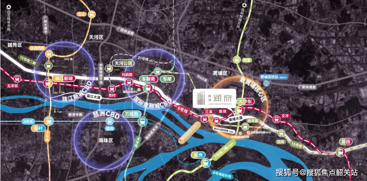 项目距离地铁5号线与7号线交汇的大沙东站约300–400米,实测步行6分钟左右。早高峰从这里坐5号线往西,不用换乘就能直达珠江新城或金融城,全程约25分钟;如果往东坐7号线,3站到科学城,8站抵达长隆万博商圈。除了地铁,周边路网也在升级:黄埔大道主干道就在南侧,鱼珠隧道(在建)未来将进一步缩短通往琶洲、海珠的时间。更长远看,规划中的黄埔高铁站若落地,区域与湾区其他城市的连接会更紧密。对在CBD上班的人来说,这里的通勤效率,已经接近“理想状态”。