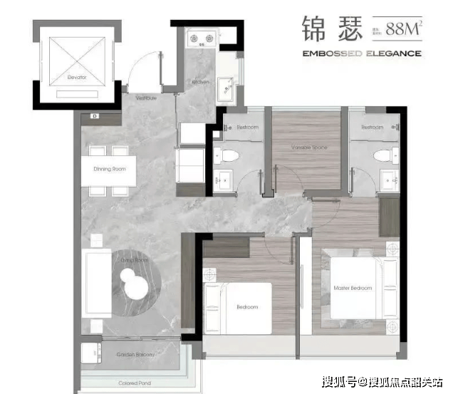 88㎡南向三房:南北对流、三开间朝南,主卧带衣帽间,精致格局,阳光满屋。