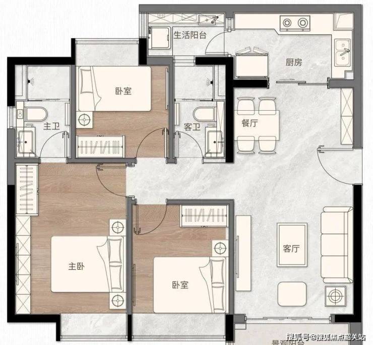【港匯臺】由顶尖设计团队精心打造,提供建面约69-144m²的二至四房户型,户户双阳台,LDK一体设计,东南向望江赏景,科学布局动静分区。每一套住房都体现了对细节的关注和对品质的追求,让您在繁华都市中找到一片宁静之地。