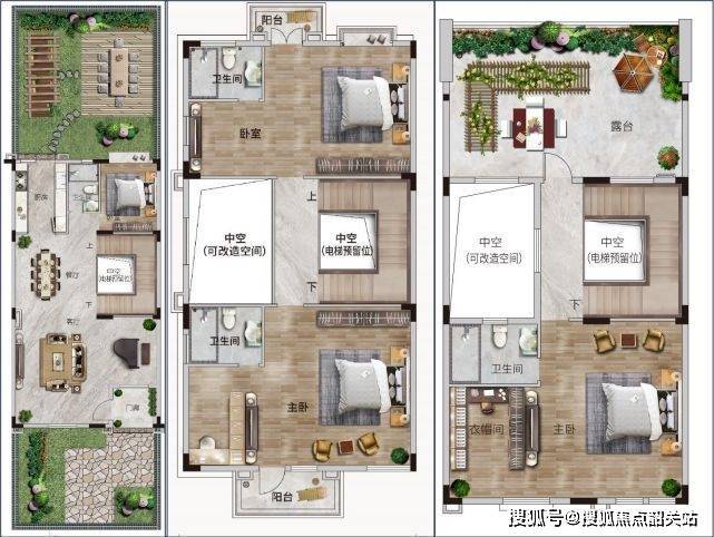 四联二层半,建筑基底卙地约100㎡,6.6米开间客厅面积:65㎡,双主套设计带约67-125㎡超大花园露台+中空赠送面积约50㎡284㎡联排别墅