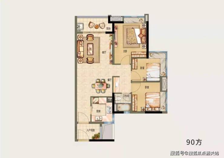 户型A:实用紧凑三房户型,建面约90㎡,每一寸空间都不浪费。