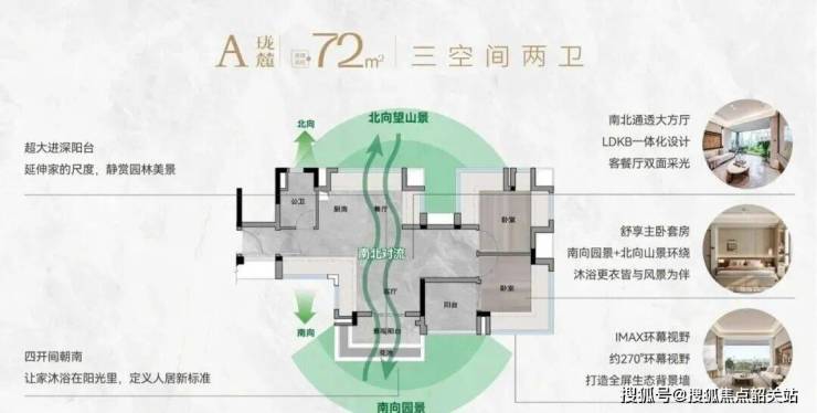 以建面约72平方米的三房两厅两卫户型为例,这在传统设计中往往显得局促,但在珑岄上城却展现出了惊人的功能性。该户型采用了横厅设计,配合LDKB(客、餐、厨、阳台)一体化布局,打破了传统墙体的界限,营造出南北通透的大方厅格局。四开间朝南的设计,让阳光成为家中的常客,无论是清晨的第一缕阳光,还是午后的温暖洒落,都能让居住者感受到自然的礼遇。更令人称道的是其独立花园入户的设计,归家即享自然礼序,不仅增加了私密性,更为生活百物的收纳提供了从容的空间。主卧套房兼具南向园景与北向山景,让沐浴更衣的日常瞬间也变得充满诗意。这种空间的可变性,能够灵活适应单身贵族、新婚夫妇乃至三口之家的不同生活场景需求。