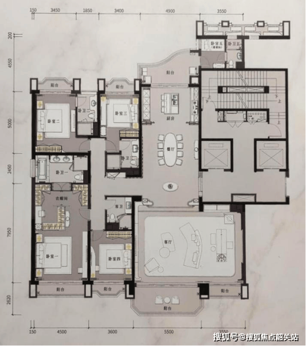 星河湾半岛五期 主推236㎡五房四卫、263㎡五房五卫和317㎡五房五卫(均含工人房),另有部分962㎡和1260㎡的复式产品。