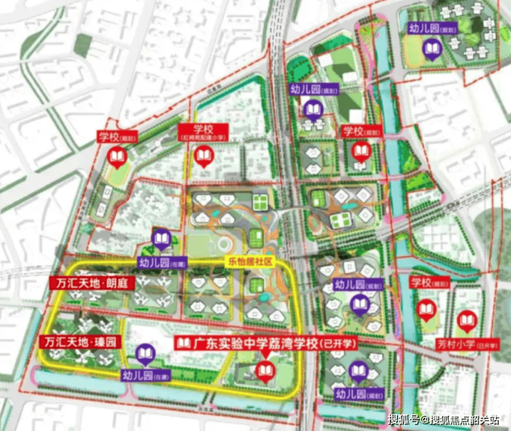 整个万汇天地规划了丰富的教育资源,包括 7 所幼儿园、3 所小学、3 所中学。