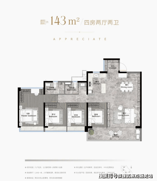 四、主推户型:103-186㎡南向四房,得房率高达126%