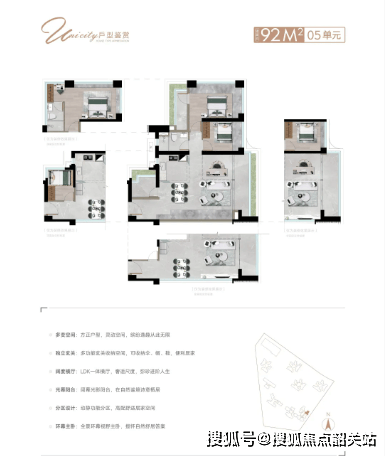 在产品设计上,项目紧跟市场趋势,推出符合新规的高使用率户型,整体使用率可达约130%。主力户型涵盖约92-165㎡的三至五房产品,满足不同家庭结构的居住需求。其中,约125㎡和141㎡的江景四房尤为亮眼,采用LDKB一体化设计,打造开阔通透的横厅空间;配备IMAX级观景阳台,将江景与园林尽收眼底;主卧多为270°环幕设计,搭配独立衣帽间与卫浴,提升居住舒适度。灵动空间设计也为家庭未来成长预留了充足可能。