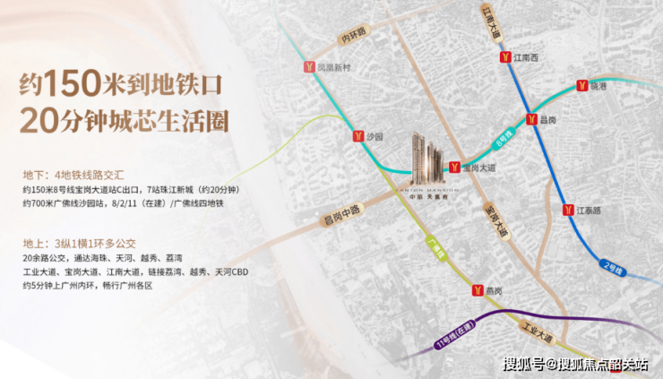 自驾:出门即是昌岗中路,周边还有宝岗大道、工业大道、东晓路等干线,无论是自驾还是乘坐地铁,前往琶洲、珠江新城等地均在30分钟内。