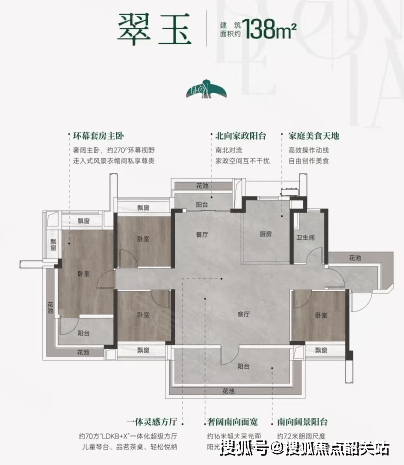 绿城玉海棠主要推出四房户型,面积分别为108平方米、118平方米、138平方米,以及四套顶复式200平方米的豪华户型。这些户型均采用了新规设计,阳台占比上限可突破至25%,使用率高达130%,相比周边竞争对手更具优势。