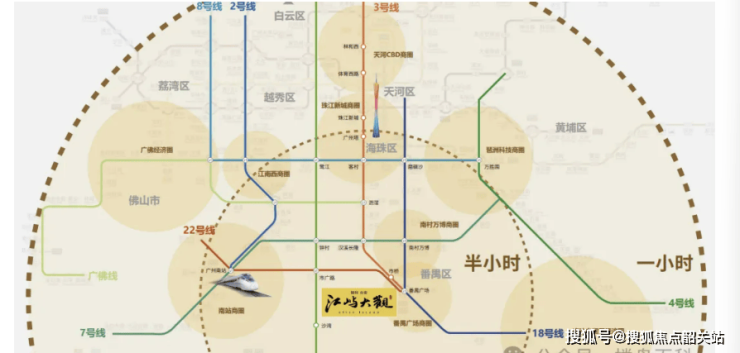 项目紧邻已开通地铁 3 号线市桥站,直线实测距离约 2.8 公里,骑行 8 分钟、自驾 10 分钟即可快速抵达,3 号线向北直达珠江新城、天河核心商圈,无缝衔接广州全城核心枢纽。步行可达已通车 18 号线番禺广场站,快速联通南沙、海珠、天河全域;22 号线即将全线通车,串联广州南站、白云机场两大超级枢纽,实现半小时湾区通勤圈。同时片区规划 17 号线、26 号线双地铁线路,未来轨道交通网络全面加密,多维地铁路网加持,日常跨区通勤、城际出行高效便捷,地铁赋能板块价值持续抬升。