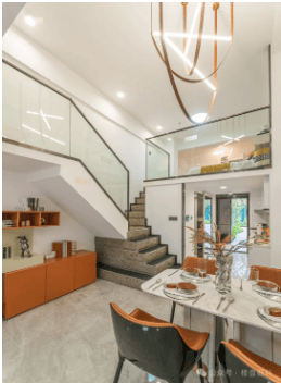 答:全屋统一 4.5 米复式挑高,交付可自由分层隔断,双层空间独立使用,格局灵活自主规划。