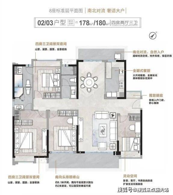 165-198㎡顶奢户型:创新设计3.5米进深空中花园,主卧套房约30㎡,配270°环幕飘窗,实测视野无遮挡。