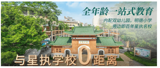 2. 小学:小区内设有明德广地实验学校(小学部),按照省一级标准打造,无需考试,业主子女可直接就读,学费为每年不住校两万多元,学校师资力量雄厚,教学设施完善,注重学生综合素质培养;同时,项目对口公立小学为南村汇贤小学,距离项目约1.2公里,车程3分钟,步行15分钟,学校教学质量中等,能满足基本教育需求。