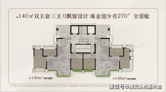 产品方面,项目主推120-210㎡云幕平层,得房率超130%,阳台面积占比25%不计容,较周边项目实得面积多出30%。以140㎡户型为例,实得面积182㎡,阳台面积45㎡,形成“空中庭院”效果。项目采用公建化立面设计,外观更具现代感与辨识度。