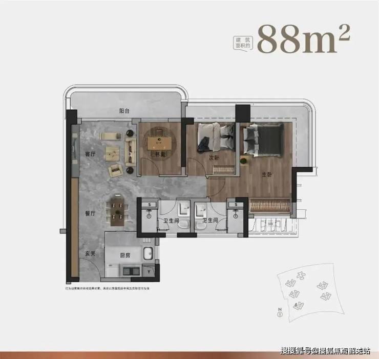 户型创新:88㎡户型实现"270°环幕主卧+双阳台"