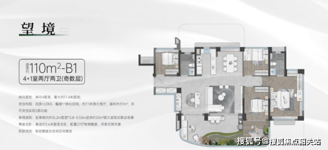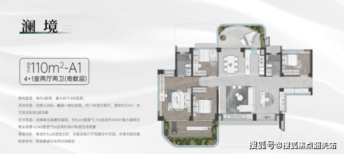 110㎡:四房两卫,拥有宽敞的生活空间。