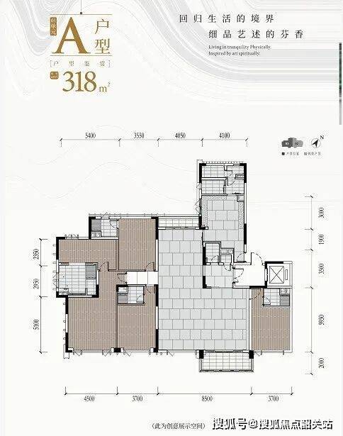 A 户型| 建面约318 ㎡ 五房两厅五卫三梯两户设计,双动线私密入户约21米五面宽设计,全南大开间空间线条利落流畅,拉阔新视界