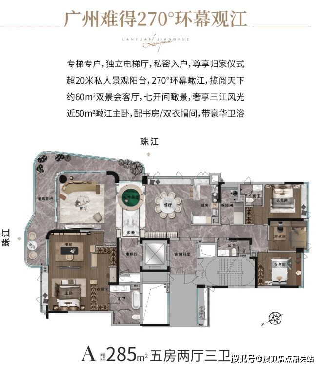 兰园江悦主要推出两种户型:193㎡和285㎡的瞰江艺术大宅。所有户型均采用一梯一户设计,拥有270°全景视野,能够欣赏到三面环江的震撼景观。每个单元都配备了专梯入户,并享有宽达400米的江景视野,完美展现了白鹅潭顶级江景的魅力。虽然具体价格尚未公布,但考虑到项目的高端定位和稀缺性,预计价格将非常具有竞争力。