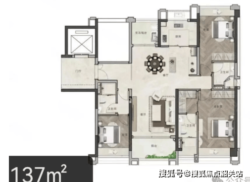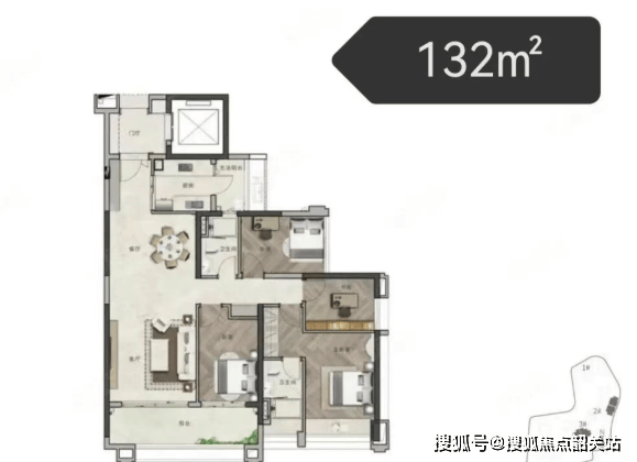 3号楼:位置相对内部,较为安静,主要为大面积户型,分别是132平四房,137平三房和178平四房。