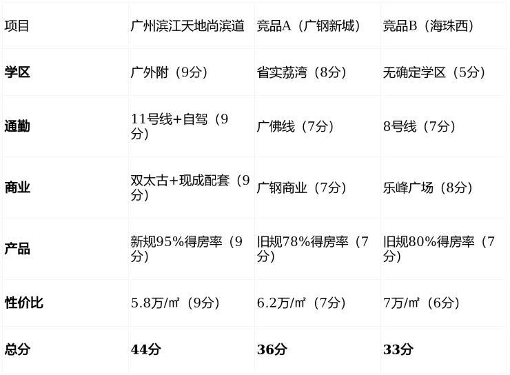 1. 评分体系:学区(30%)+通勤(25%)+商业(15%)+产品(20%)+性价比(10%)