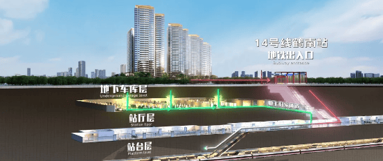 答:项目距在建 14 号线鹤南站约 200 米,距 2 号线黄边站约 1 公里;14 号线二期(嘉禾望岗 - 广州火车站)预计 2025 年建成,开通后通勤更便捷。
