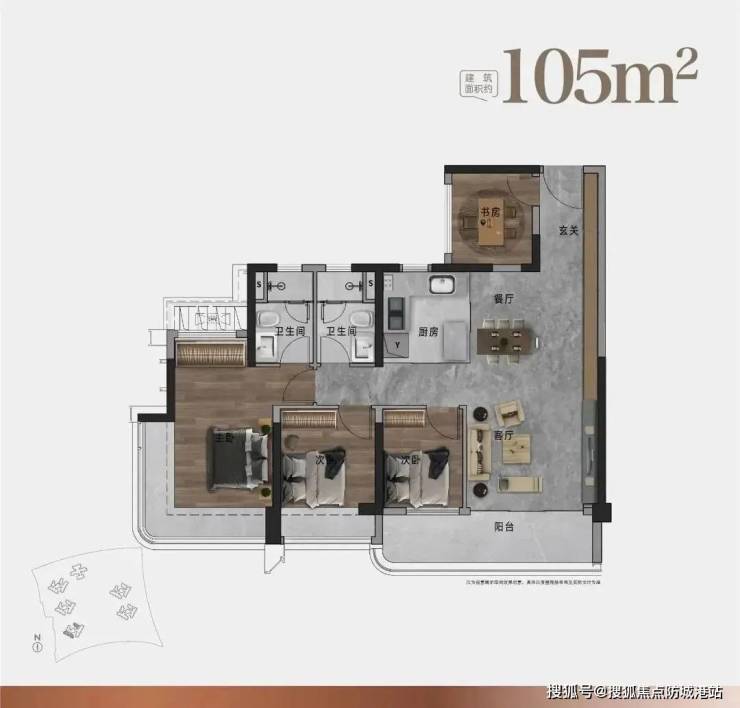 户型亮点:125㎡四房,主卧套房带飘窗,次卧最小面积超9㎡,避免“鸡肋空间”。