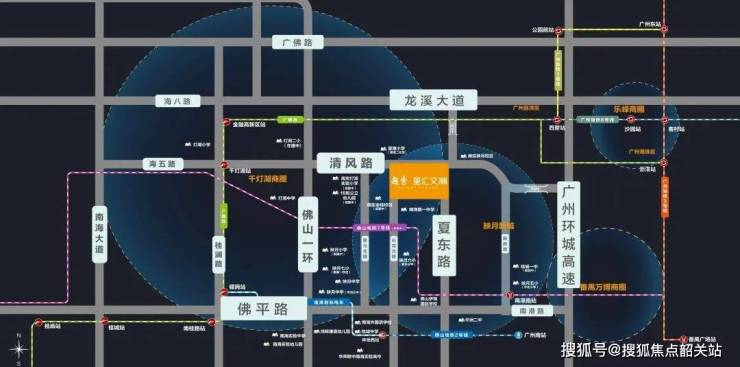 越秀·星汇文瀚地处千灯湖东拓区与映月新城核心区的交汇点,同时也是广佛融城的重要枢纽地带。该区域自2020年10月以来,仅用了17个月便成功吸引了10家高新企业总部入驻,投资总额超过100亿人民币,被誉为“下一个灯湖十年”的发展热点区域。