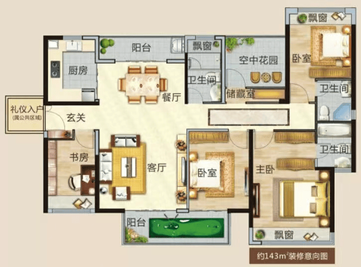 博雅滨江聚焦改善型家庭需求,主力产品为建面约112-143㎡的四至五房户型,精准匹配二胎家庭、三代同堂等多元结构。其中,112㎡四房两厅两卫为“改善入门首选”,通过LDK一体化设计提升空间通透感;122㎡金牌户型优化动线,主卧套房带独立卫浴与衣帽区;128㎡二胎标配户型增设多功能房,灵活应对成长变化;143㎡五房两厅三卫则面向高端客群,配备双主卧、双阳台,奢享江景视野。所有户型均采用南北通透布局,大面宽、短进深,最大化引入自然采光与江风。细节上,飘窗、阳台赠送面积多,得房率优于市场平均水平。在广佛房价高企的背景下,此类高实用性、高舒适度的产品,成为理性购房者的优选。